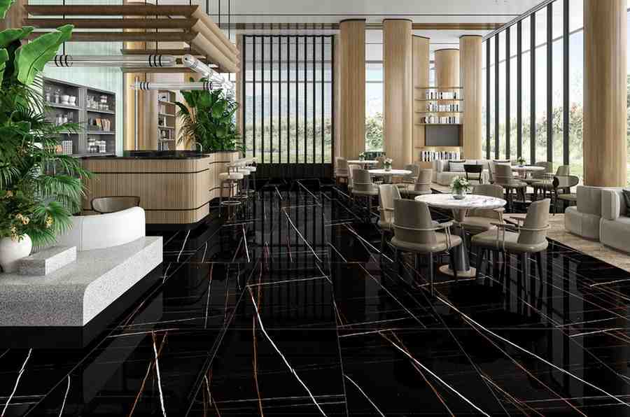 4. Commercial Spaces: In retail environments, showrooms, or office spaces, high gloss tiles can help create a clean, professional, and high-end atmosphere. Their sleek and polished appearance is often used in luxury retail settings and upscale hotels.