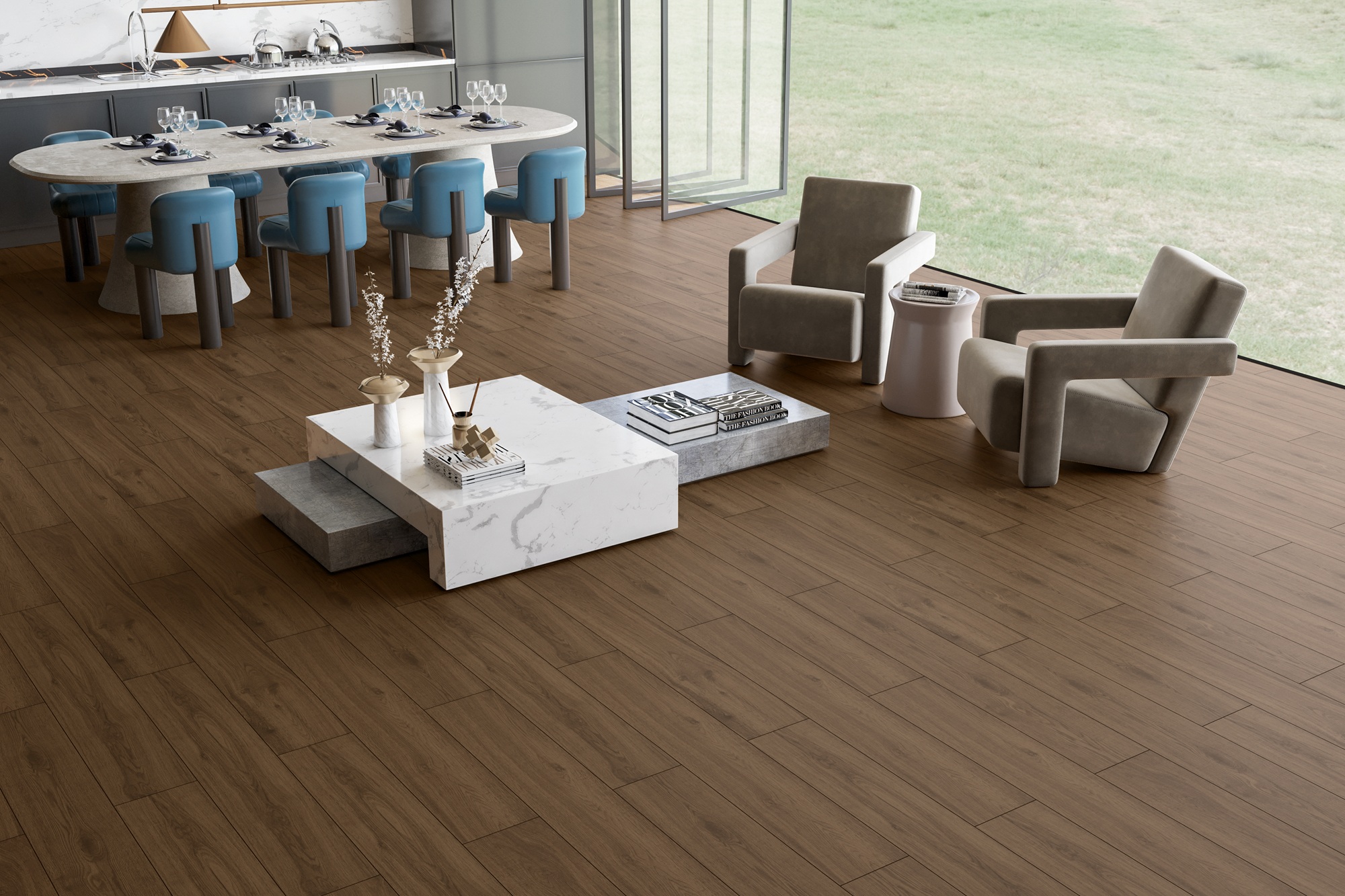 Timber Aura captures the natural warmth and organic beauty of real wood while offering the durability and low maintenance of high-performance tiles. With authentic grain patterns and earthy tones, this collection brings a cozy, inviting atmosphere to any space.
